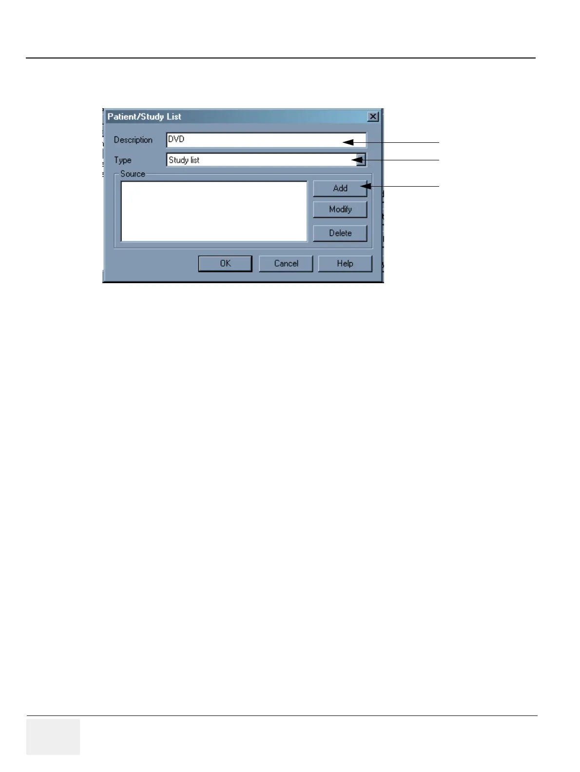 4.) In the Patient/Study List dialog box type in a Description of the Patient or Study list you want to