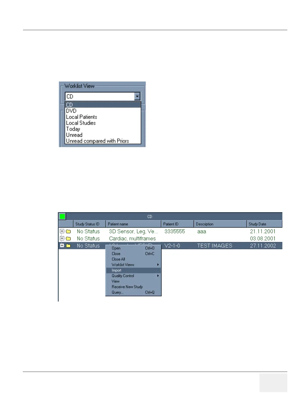 7.) If you want to import the study, select it, right-click it and then left-click Import from the shortcut