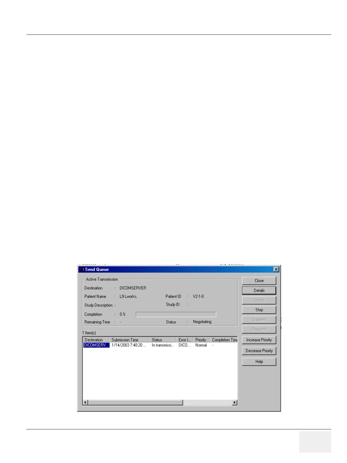 For a more detailed view, press Send Queue on the teleradiology tooltab. The Send Queue box gives