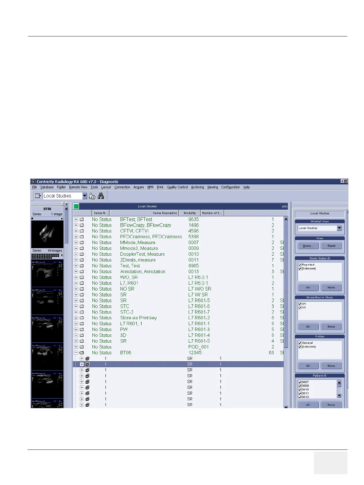 Transferred studies, images and cine loops in DICOM and Raw data formats will appear in the Data