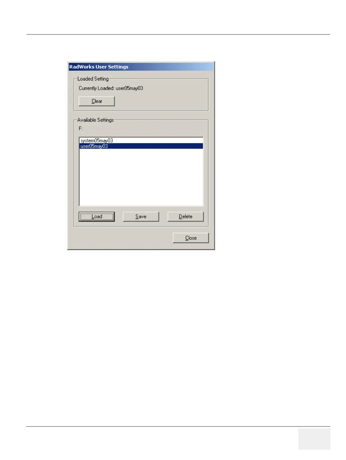Figure 10-9 Restore RadWorks User Settings