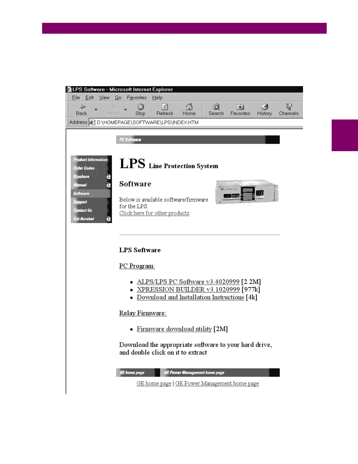 4. The Software page for the LPS-O relay will be displayed as shown in Figure 13–2: LPS-O SOFTWARE