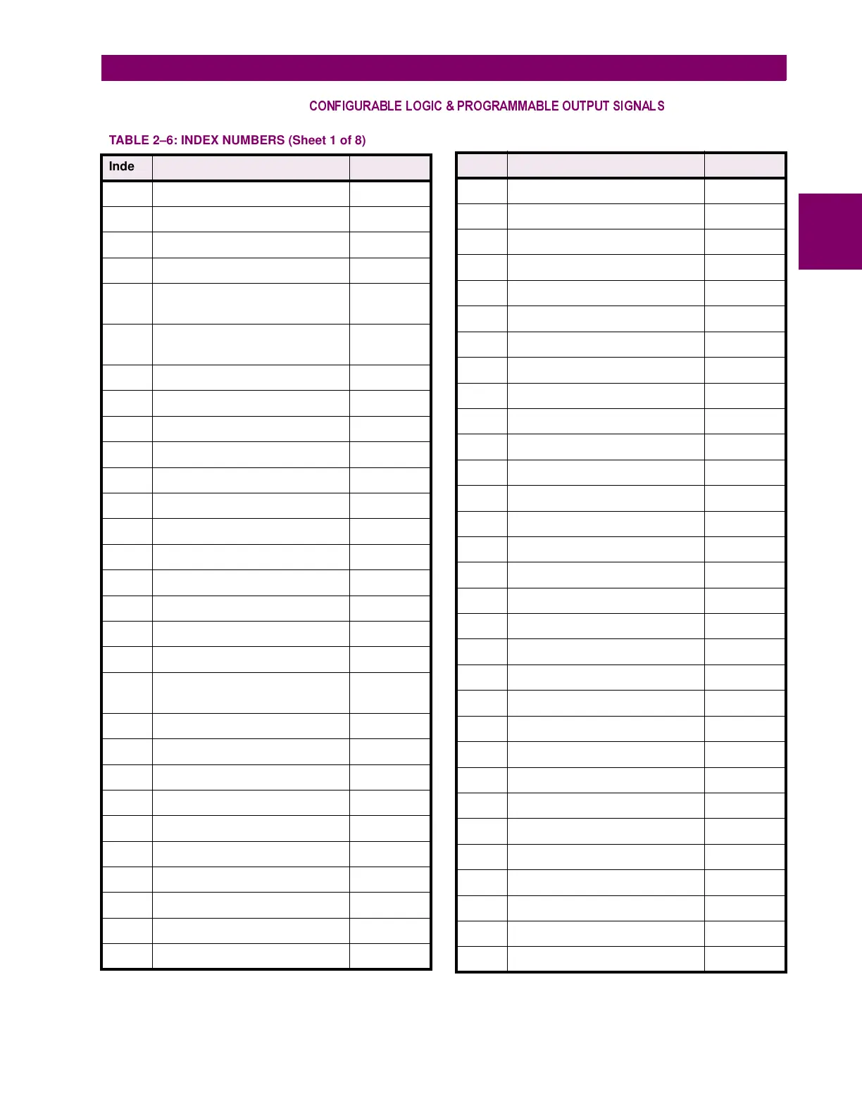 TABLE 2–6: INDEX NUMBERS (Sheet 1 of 8)