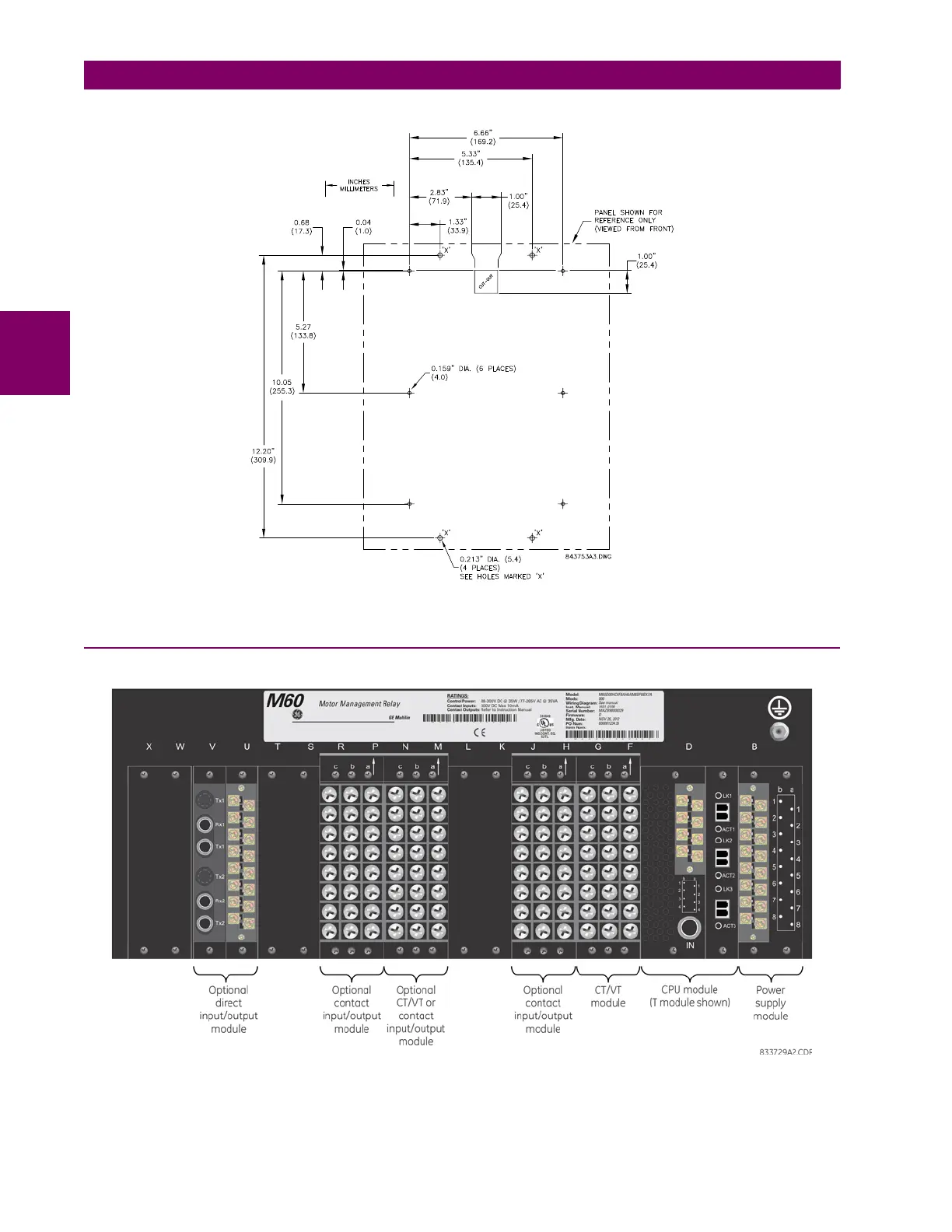 Figure 3–7: M60 VERTICAL SIDE MOUNTING REAR DIMENSIONS (STANDARD PANEL)