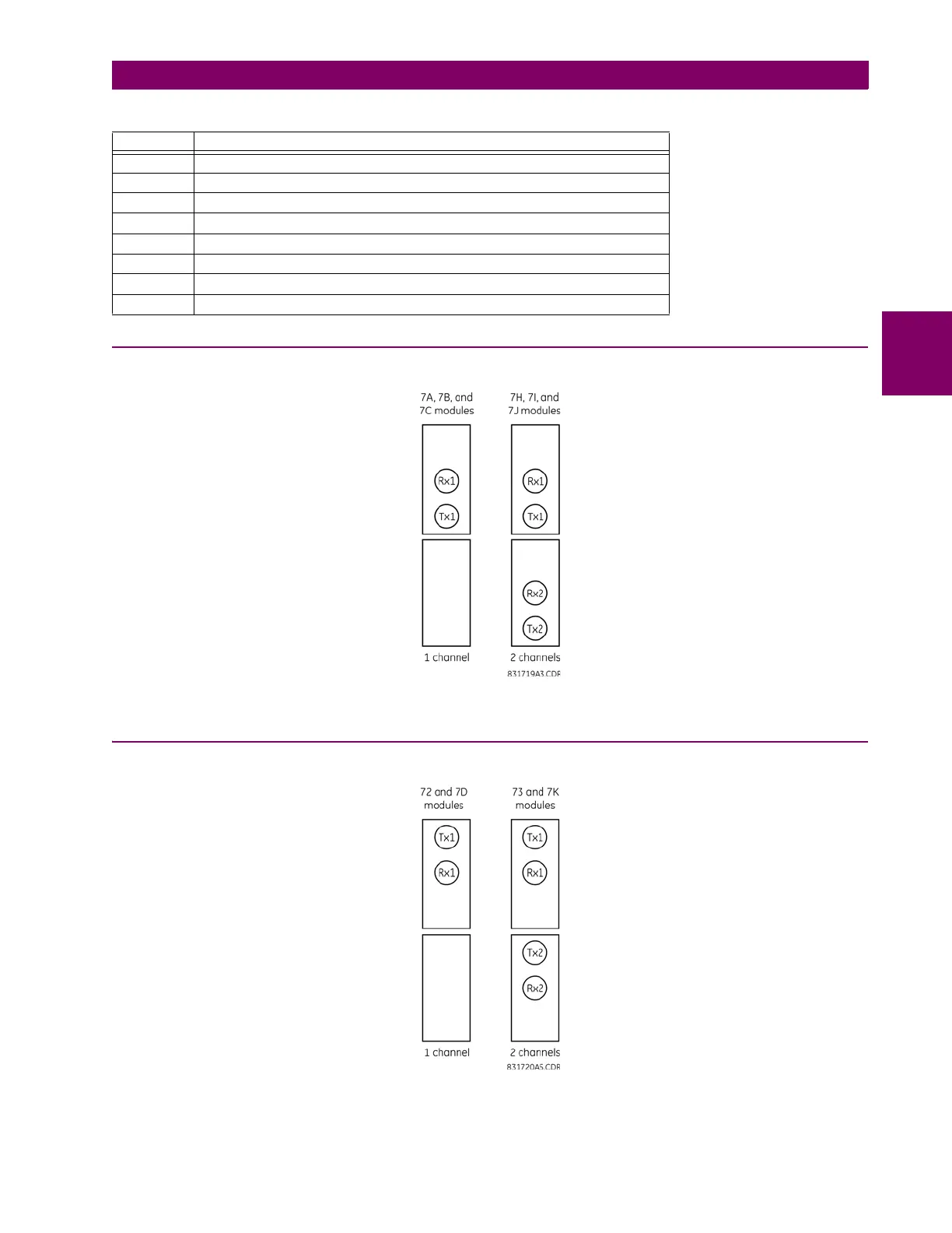 The following figure shows the configuration for the 7A, 7B, 7C, 7H, 7I, and 7J fiber-only modules.