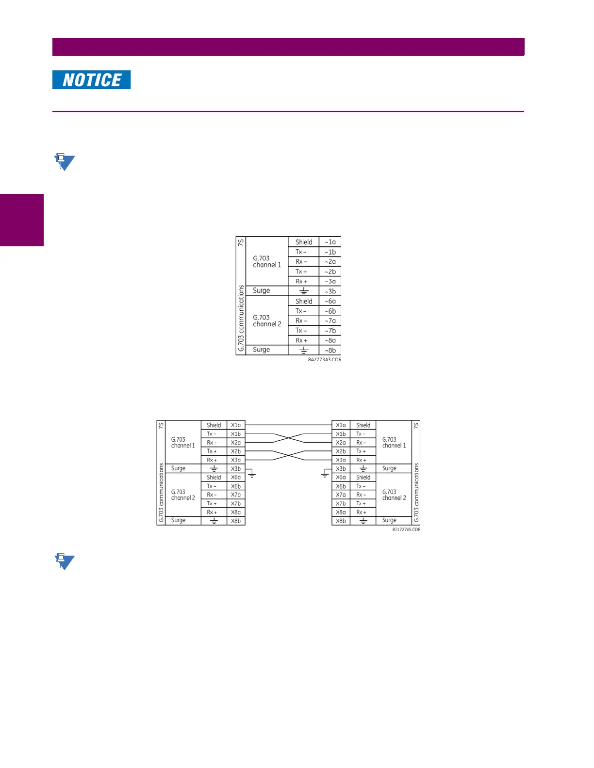 The following figure shows the typical pin interconnection between two G.703 interfaces. For the actual physical arrange-