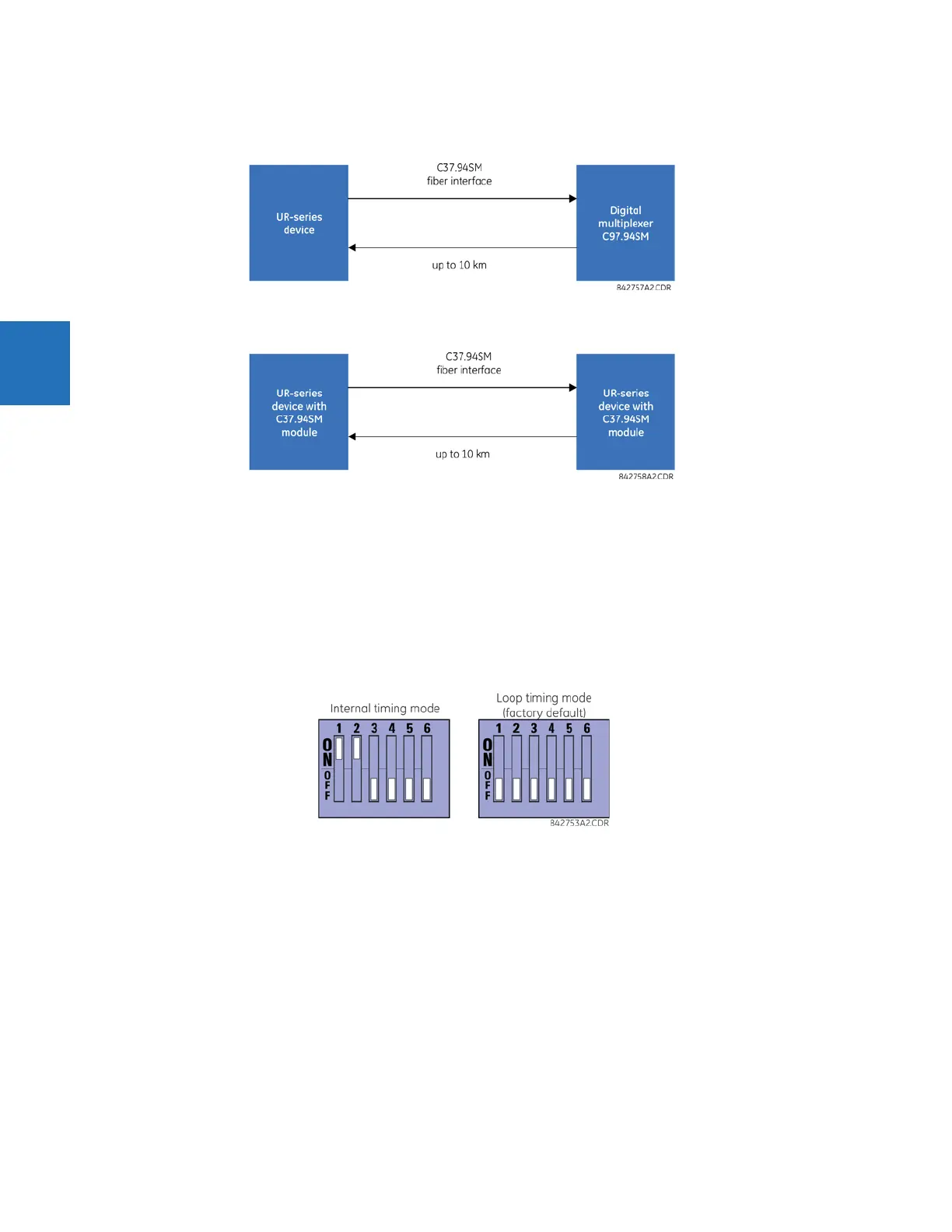 The UR-series C37.94SM communication module has six switches that are used to set the clock configuration. The