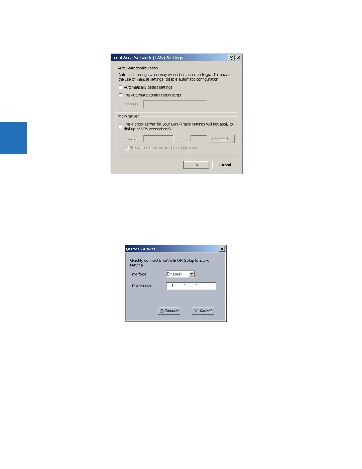 Each time that the EnerVista UR Setup software is initialized, click the Quick Connect button to establish direct