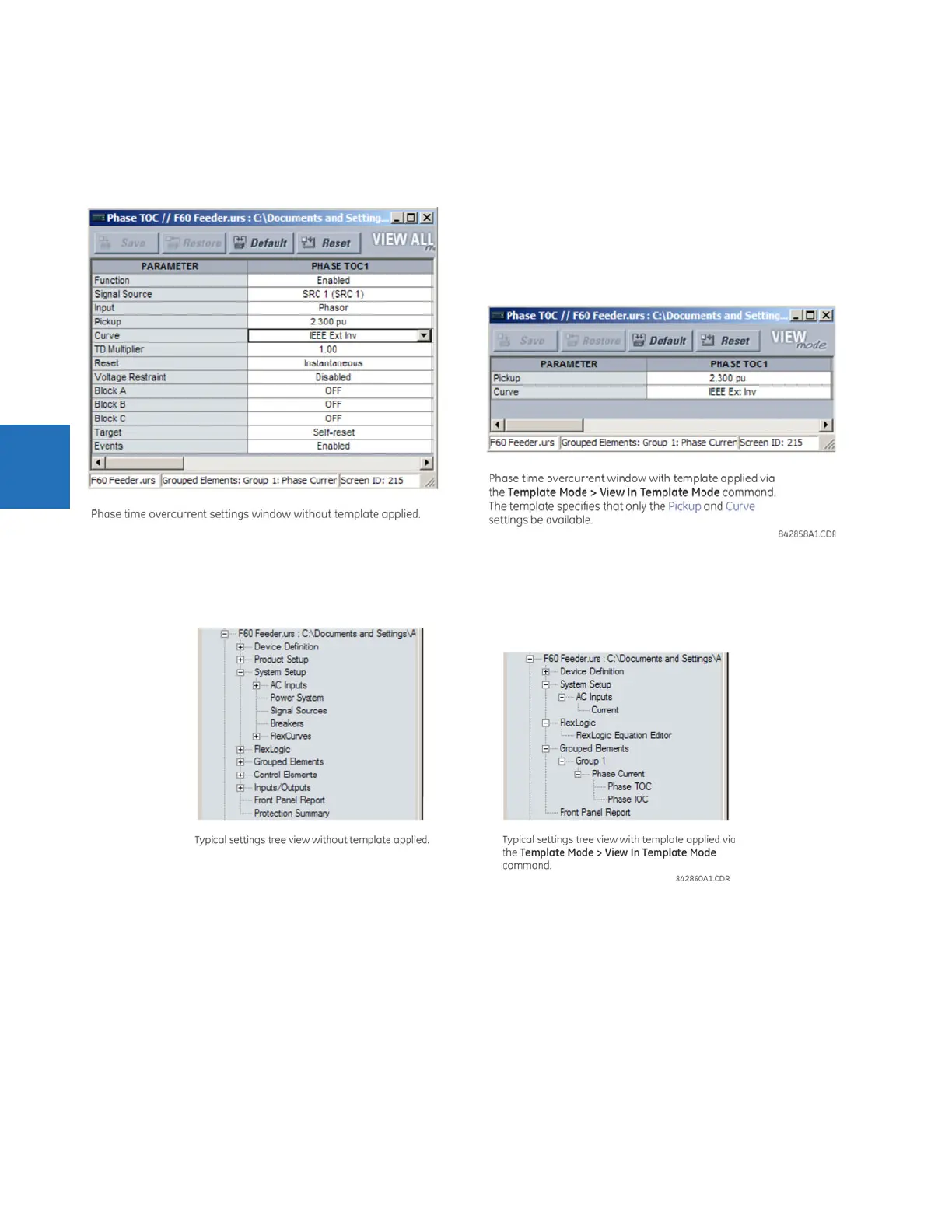 shown. The effect of applying the template to the phase time overcurrent settings is shown as follows.
