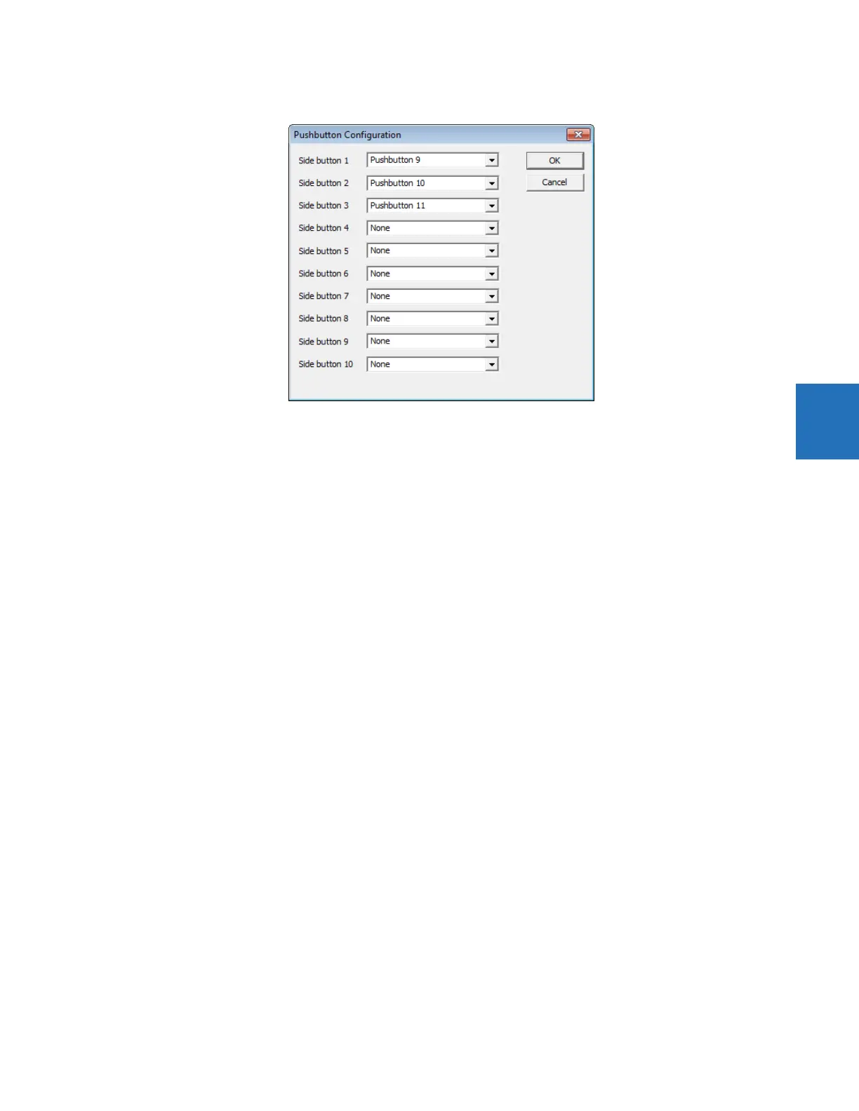 As an example, if you set up a single-line diagram with two breakers and six switches, then eight of the side pushbuttons