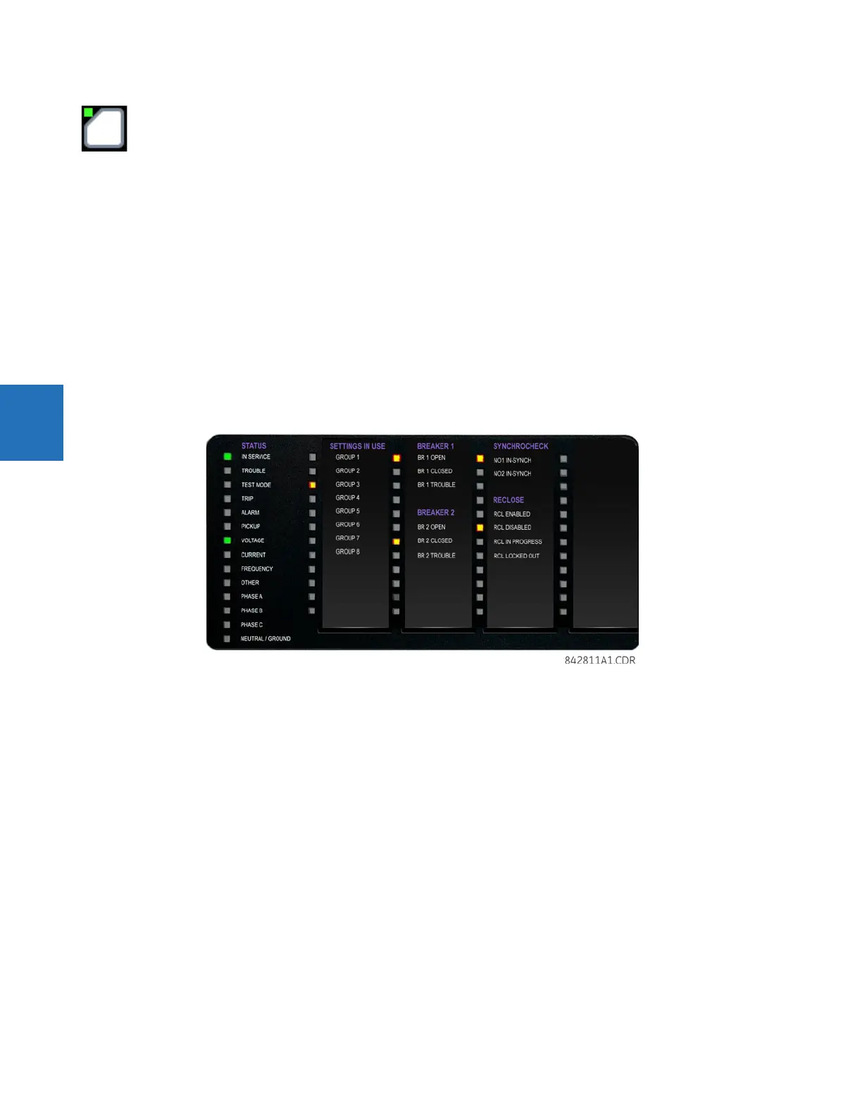 • TROUBLE — Indicates that the relay has detected an internal problem. Check the self-test messages outlined at the