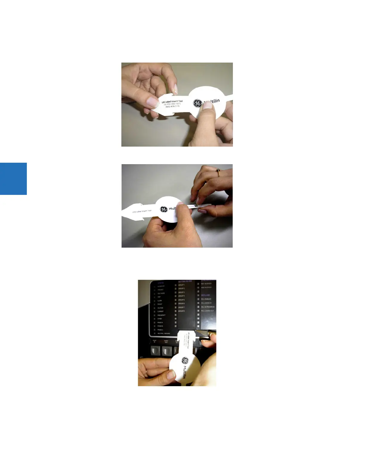 1. Use the knife to lift the LED label and slide the label tool underneath. Ensure that the bent tabs are pointing away from