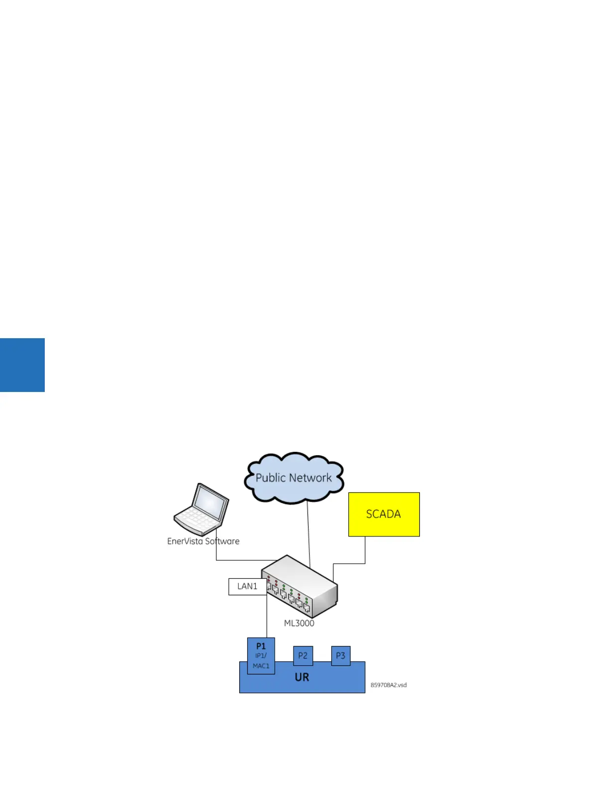 EnerVista, and access to the public network shared on the same LAN. No redundancy is provided.