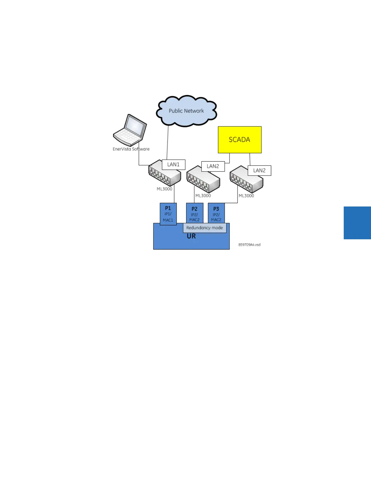 SCADA is provided through LAN2. P2 and P3 are connected to LAN2, where P2 is the primary channel and P3 is the