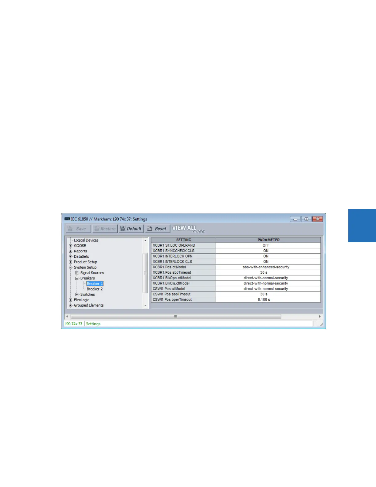 configure the IEC 61850 protocol interface with the first breaker control and status monitoring element. The settings and