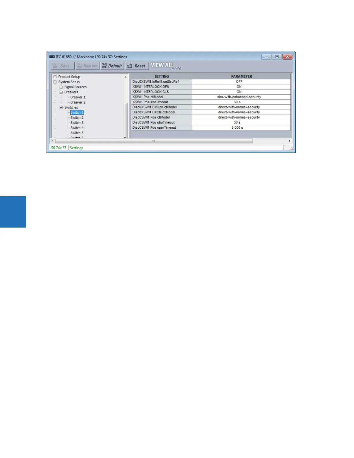 This setting is used to select a FlexLogic operand that declares to IEC 61850 services that disconnect switch 1 is selected