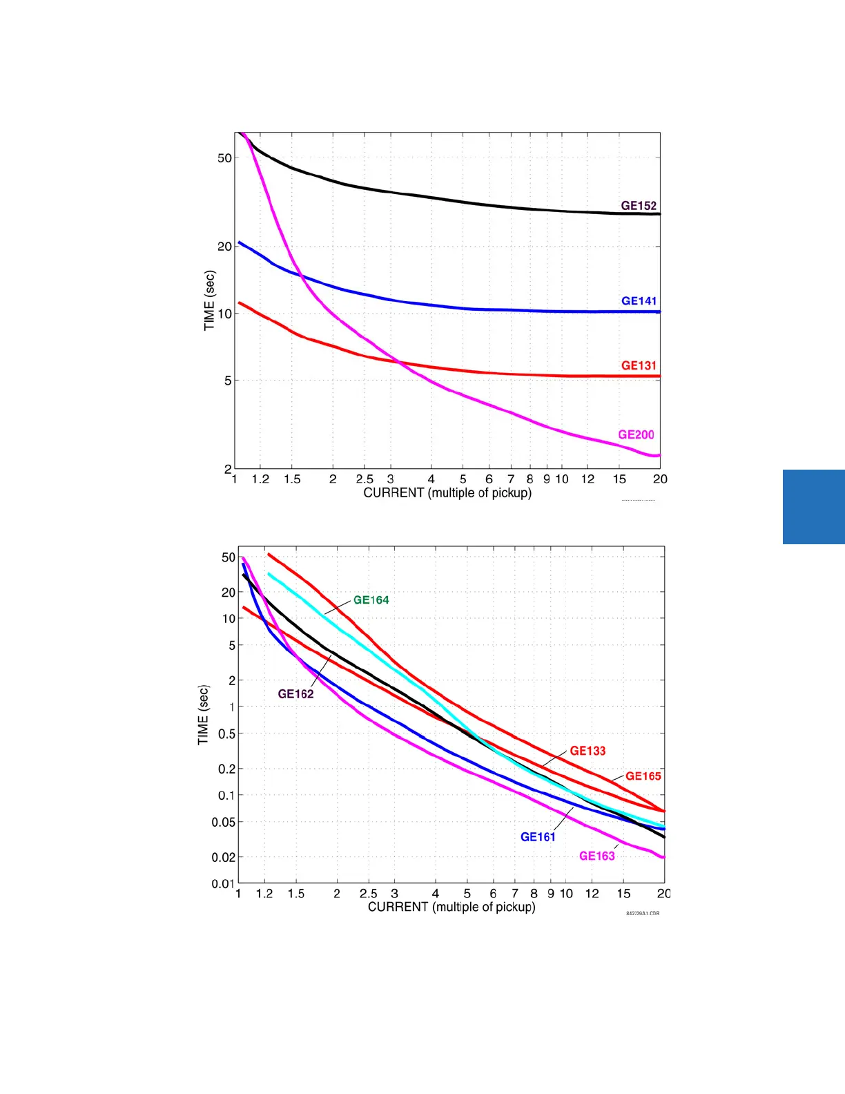 Figure 5-82: Recloser curves GE133, GE161, GE162, GE163, GE164, and GE165