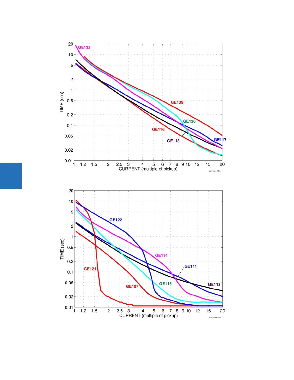 Figure 5-83: Recloser curves GE116, GE117, GE118, GE132, GE136, and GE139