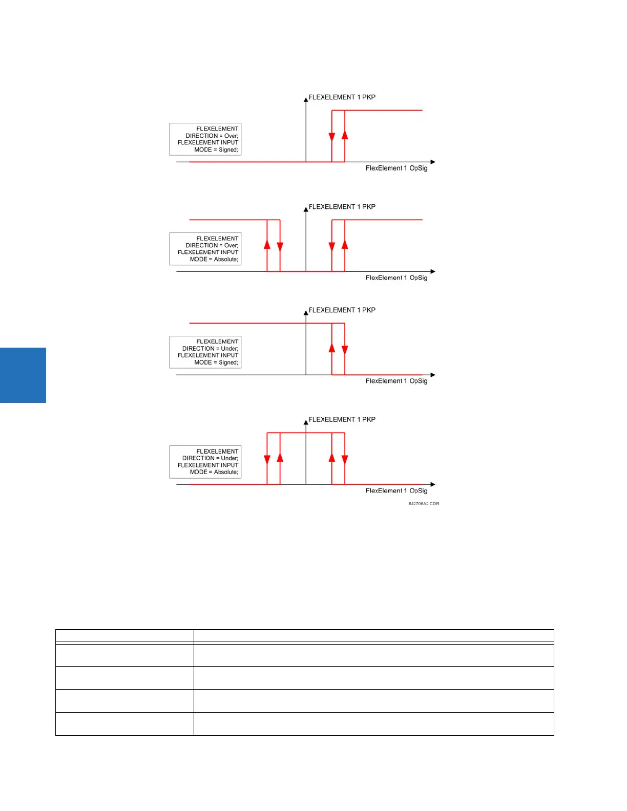 FLEXELEMENT 1 PICKUP value. If set to “Under,” the
