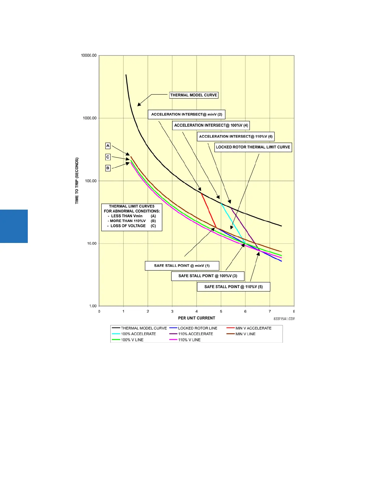 1. Draw a curve for the running overload thermal limit. The curve is one that has been selected in the relay as a
