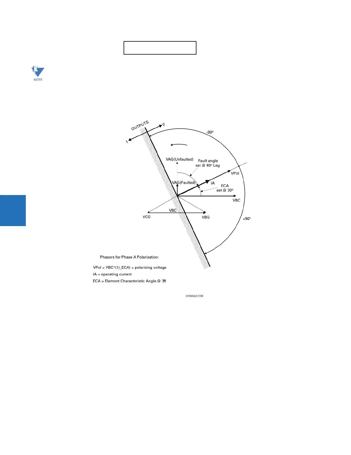 (phase current) and the polarizing signal (the line voltage, shifted in the leading direction by the characteristic angle, ECA).