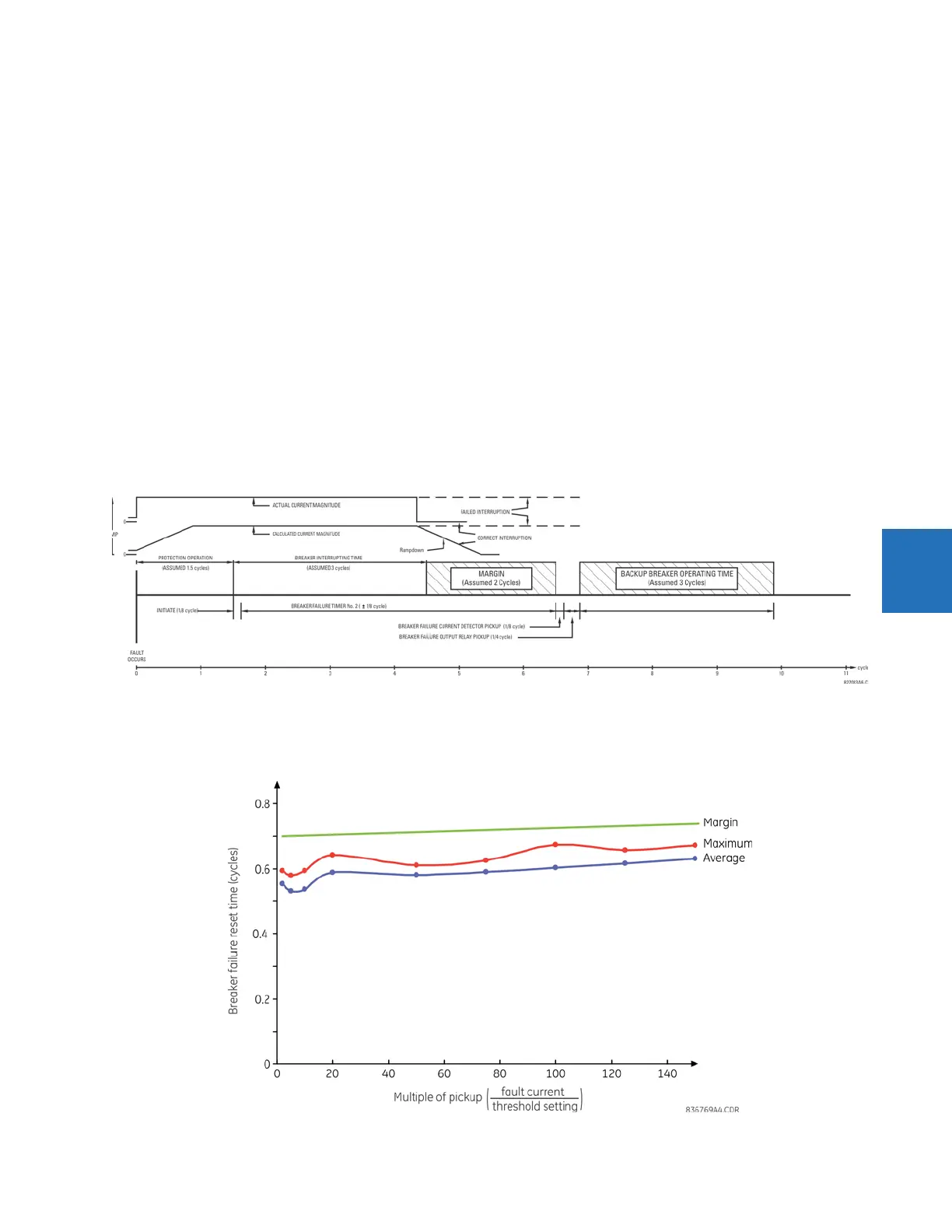 The current supervision elements reset in less than 0.7 of a power cycle for any multiple of pickup current as shown in the
