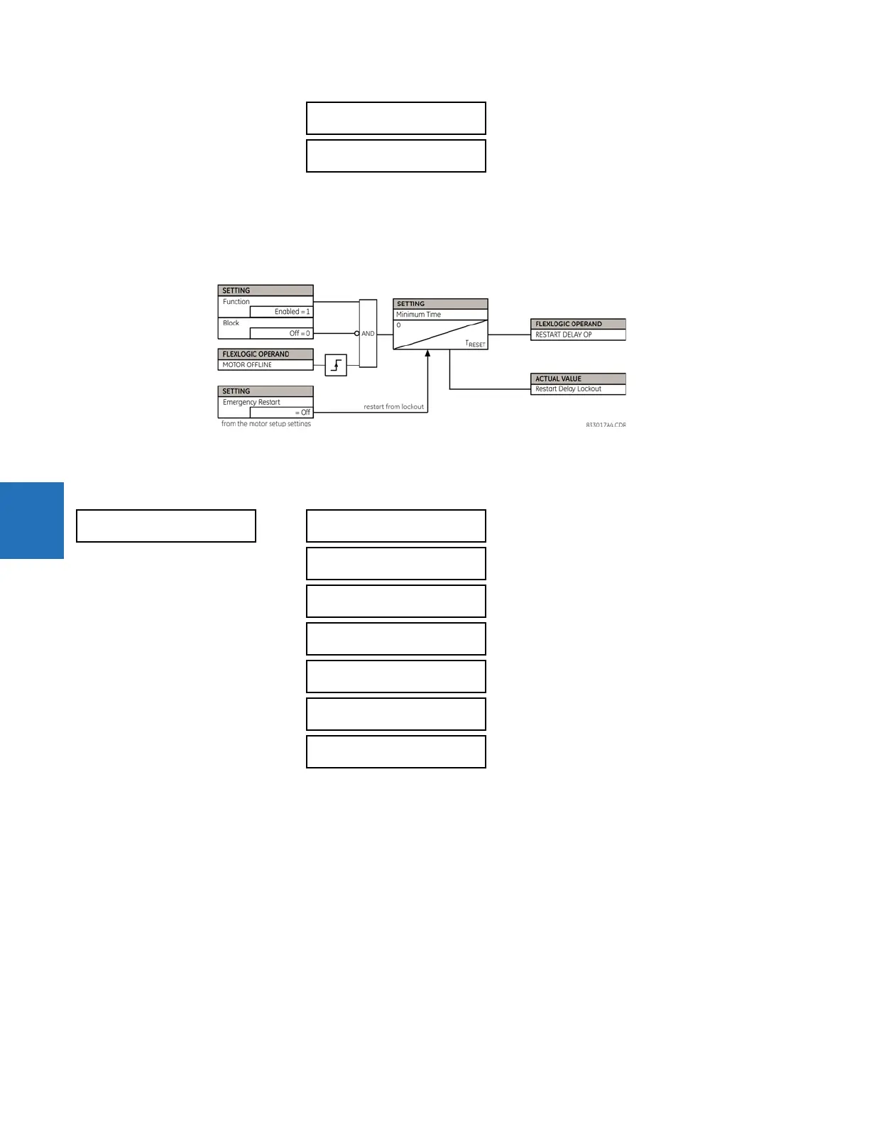 restart delay element asserts the RESTART DELAY OP FlexLogic operand for RESTART DELAY MIN TIME after the motor has