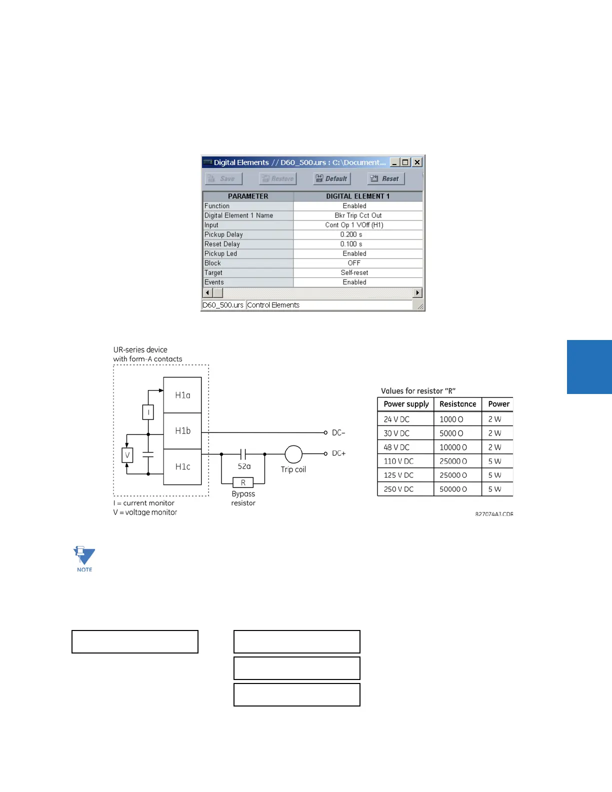 following figure). This can be achieved by connecting a suitable resistor (see figure) across the auxiliary contact in the trip