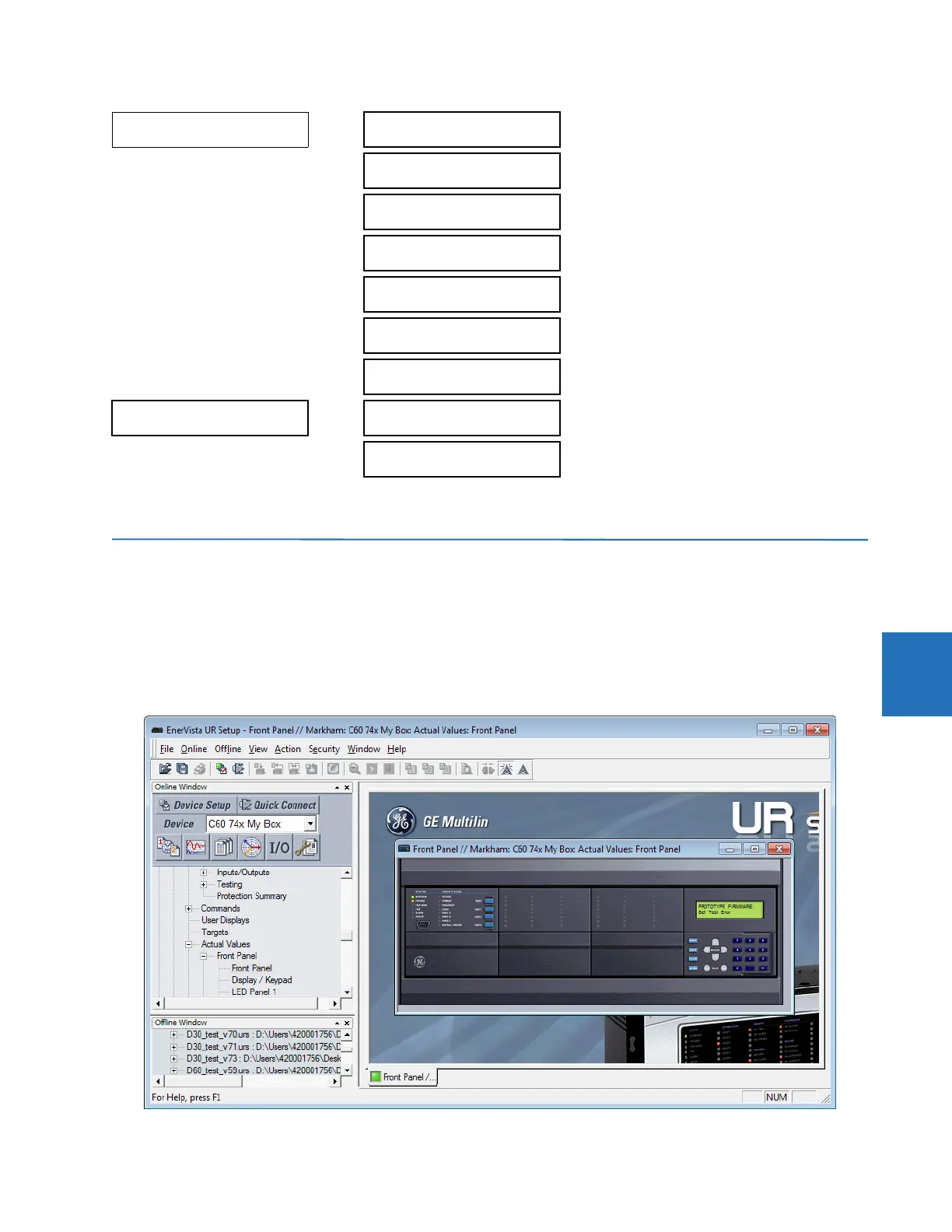The front panel can be viewed and used in the EnerVista software, for example to view an error message displayed on the