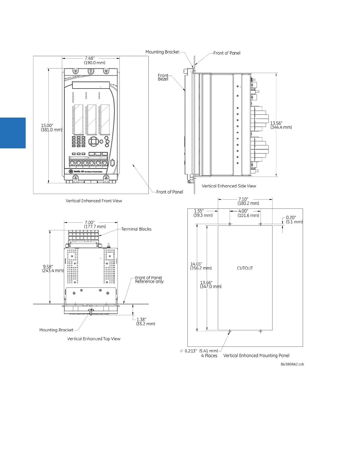 Figure 3-5: Vertical dimensions (enhanced front panel)