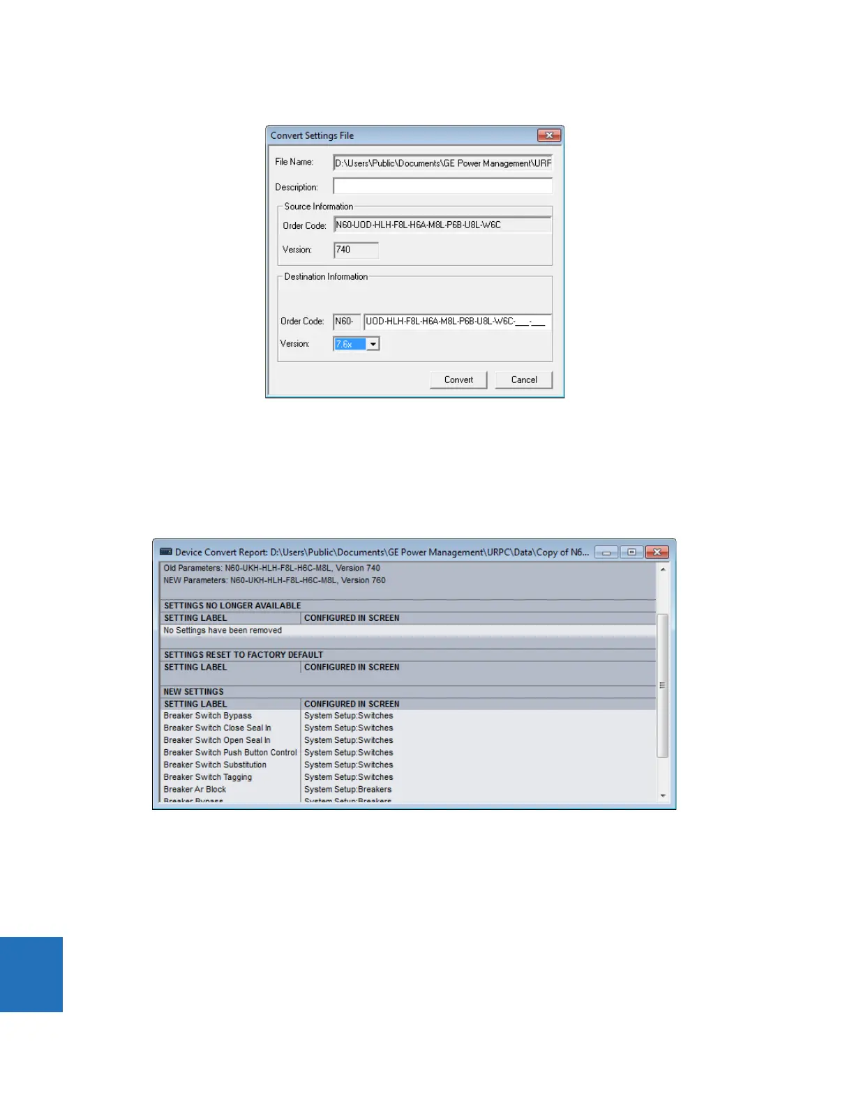 4. Review the conversion report. The values of all settings that have been defaulted during conversion are not listed in