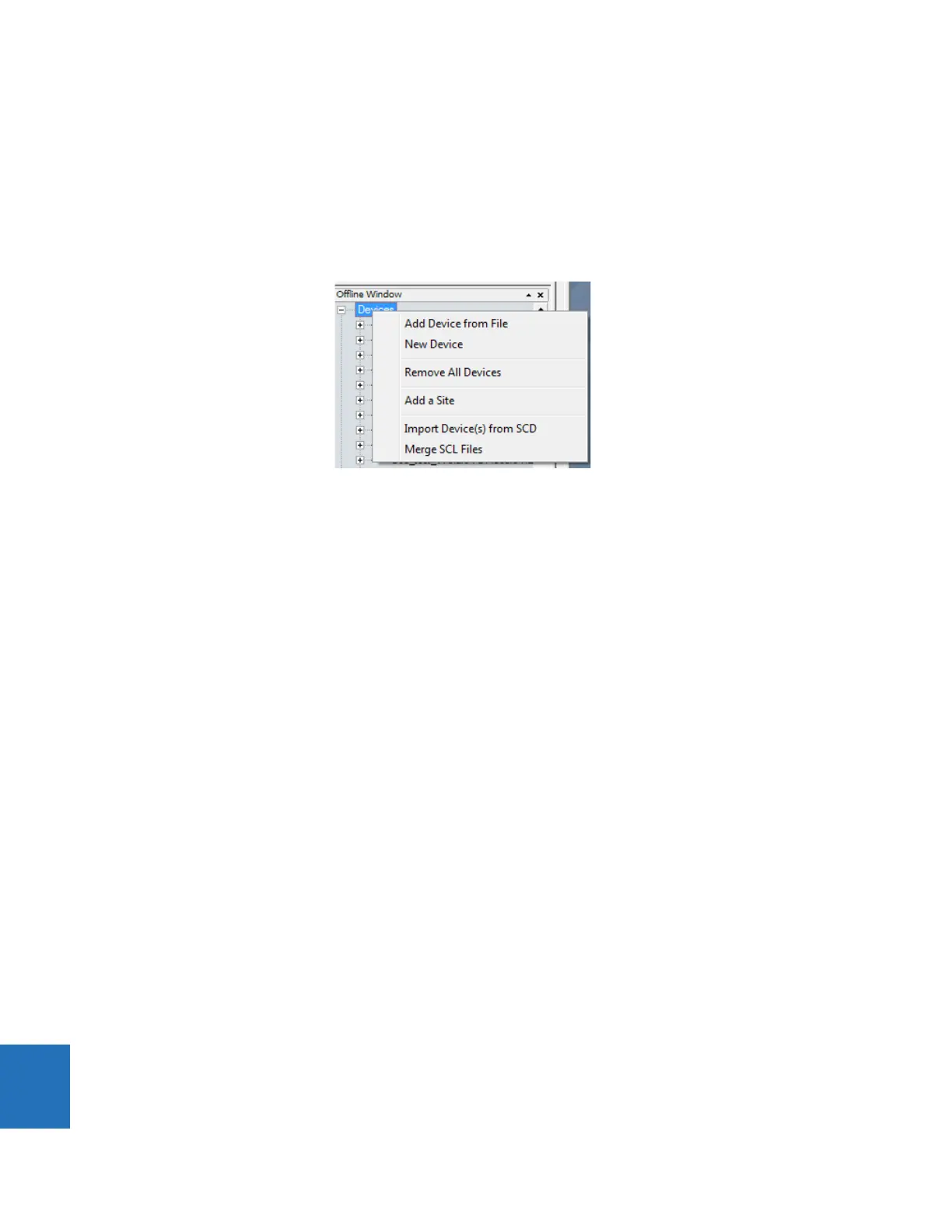 3. In the Offline Window area, right-click Devices and select Import Devices from SCD.