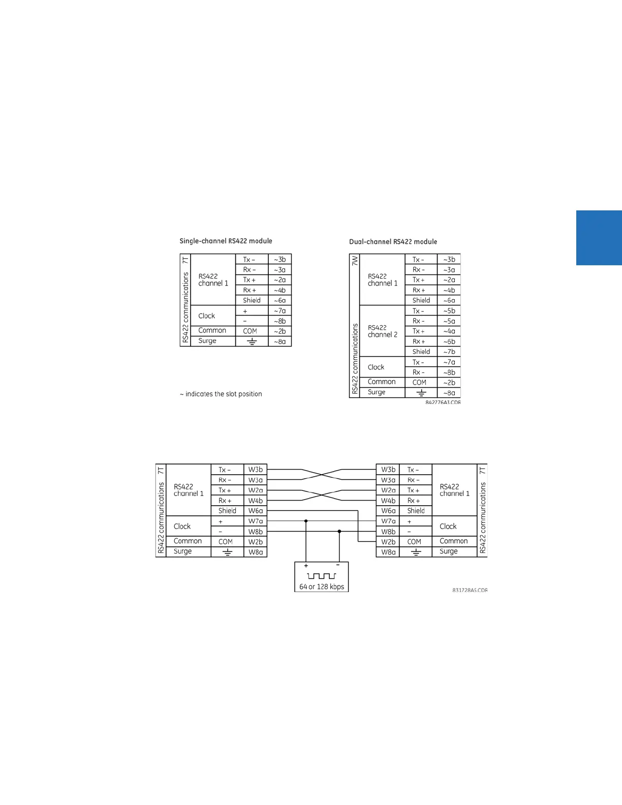 There are two RS422 inter-relay communications modules available: single-channel RS422 (module 7T) and dual-channel