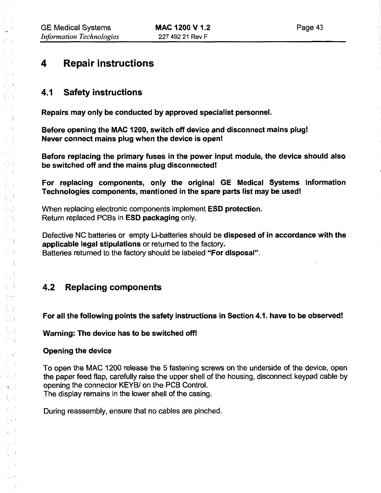 Other manuals for GE MAC 1200