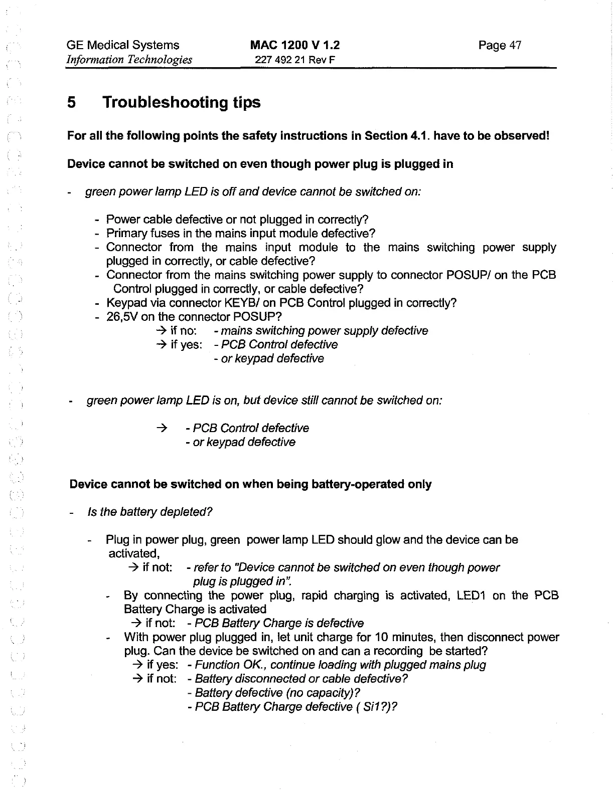Other manuals for GE MAC 1200