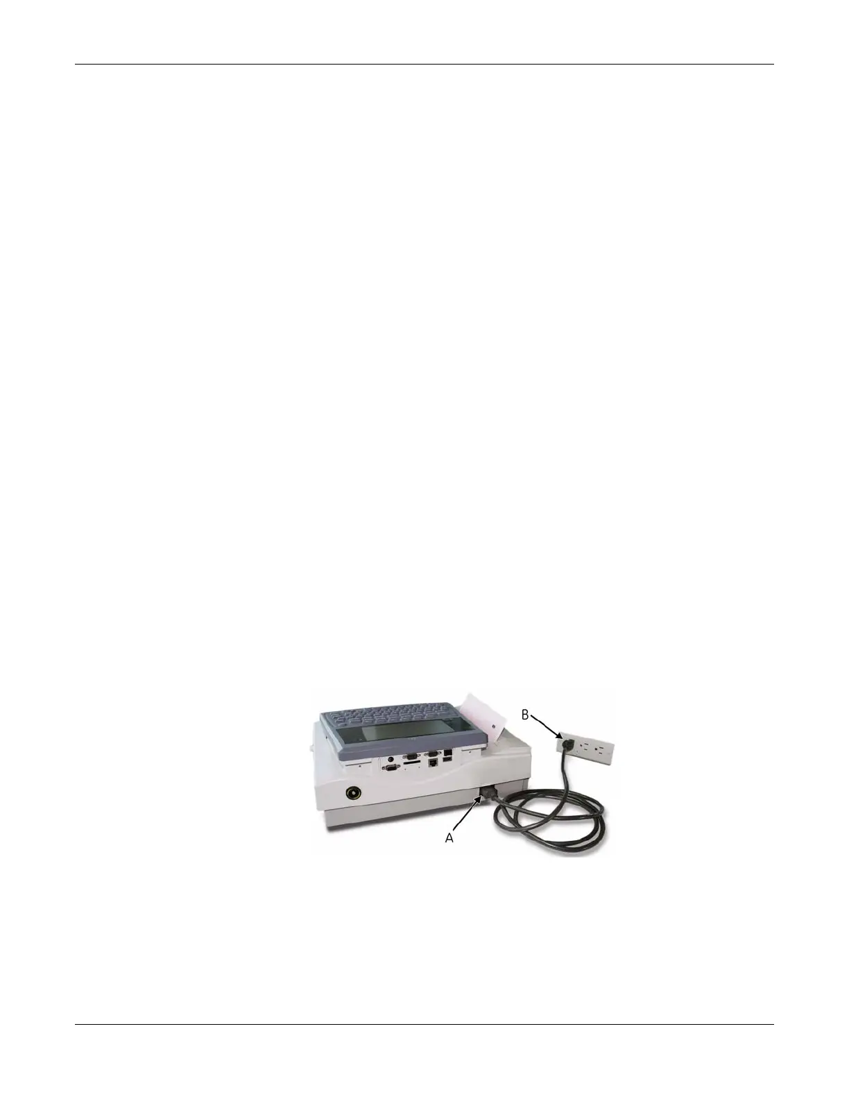 2. Plug the male end of the unit’s power cord into an AC outlet. (B)