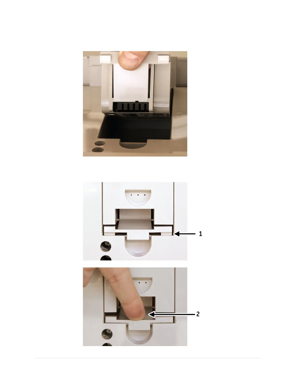 Ifitisnotseatedrmly(1),pressthelatchuntilitsnapsintoplace(2).