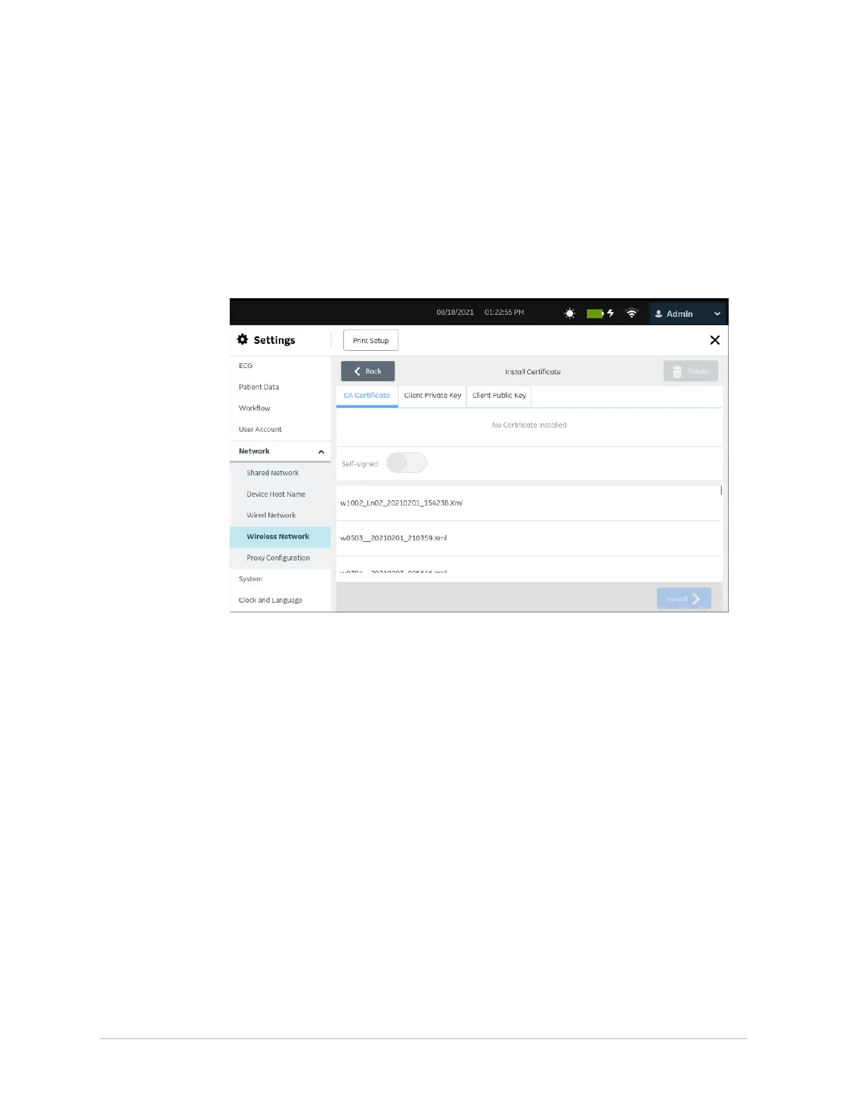4. If the CA Certificate setting is on, perform the steps below to install a CA