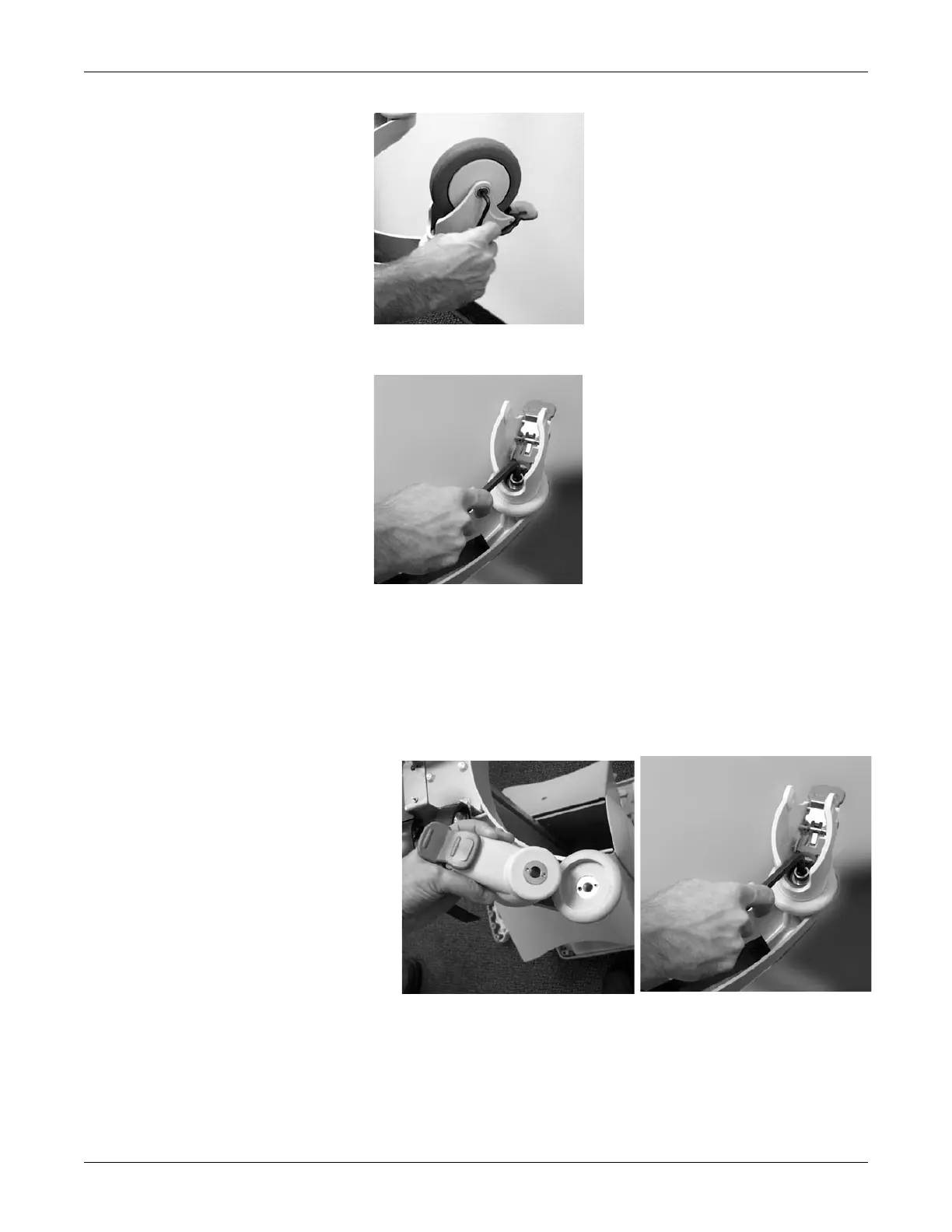 4. Using an Allen wrench, remove the bolt holding the caster to the trolley.