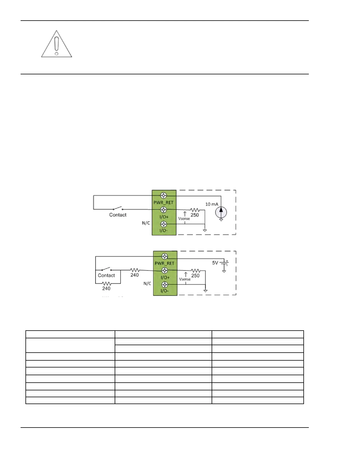This mode of input uses low currents due to the load resistance. If the user’s contact