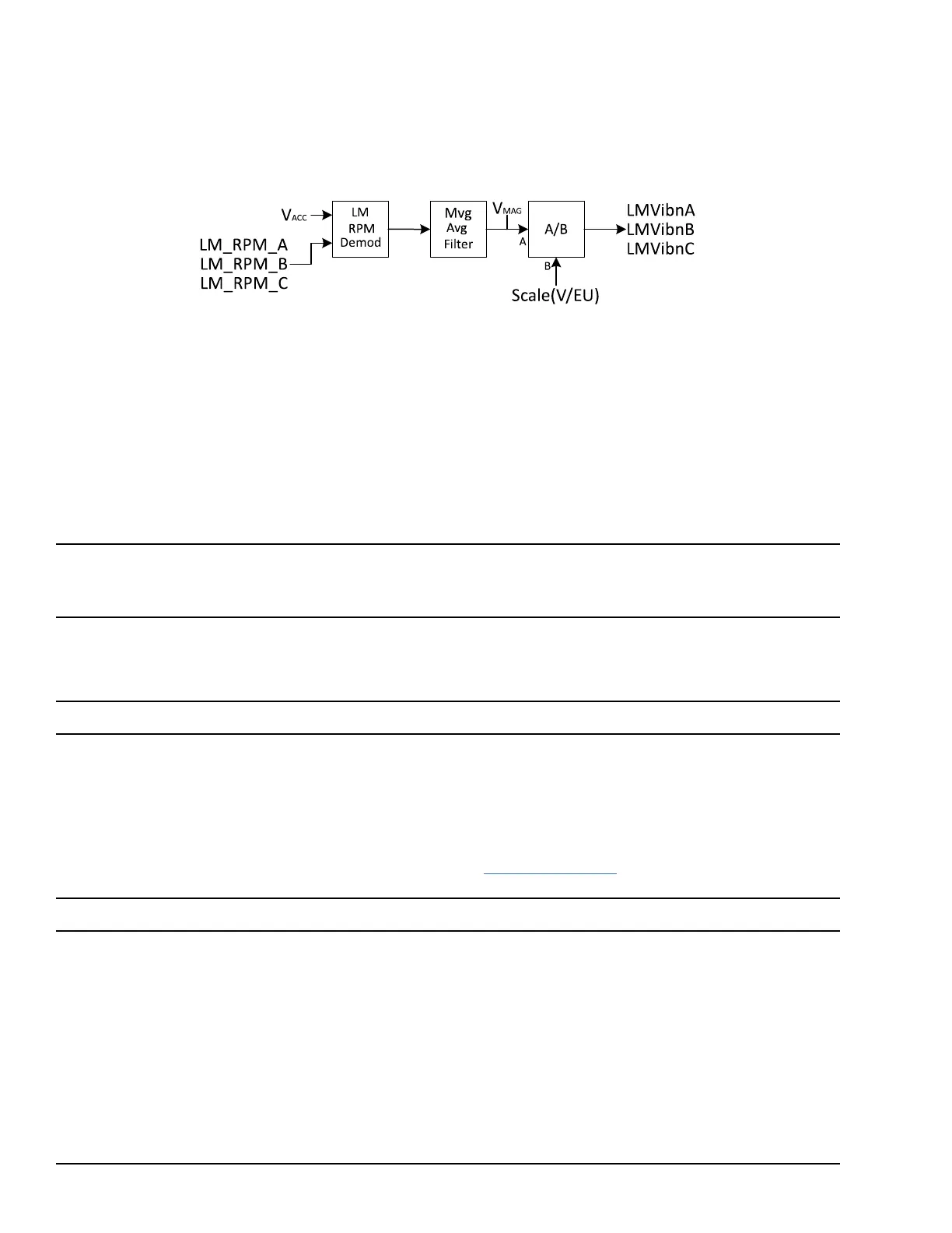 LMVibnA, LMVibnB, LMVibnC – Magnitude of 1X harmonic relative to specified frequency (RPM) in Engineering Units