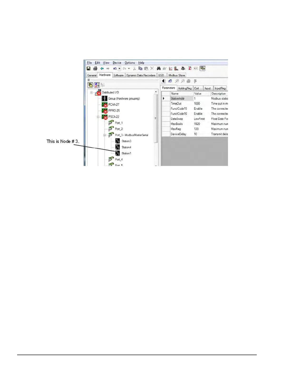 to the position of the station or device as listed inside the port, as displayed from the Hardware Tab Tree View. The node