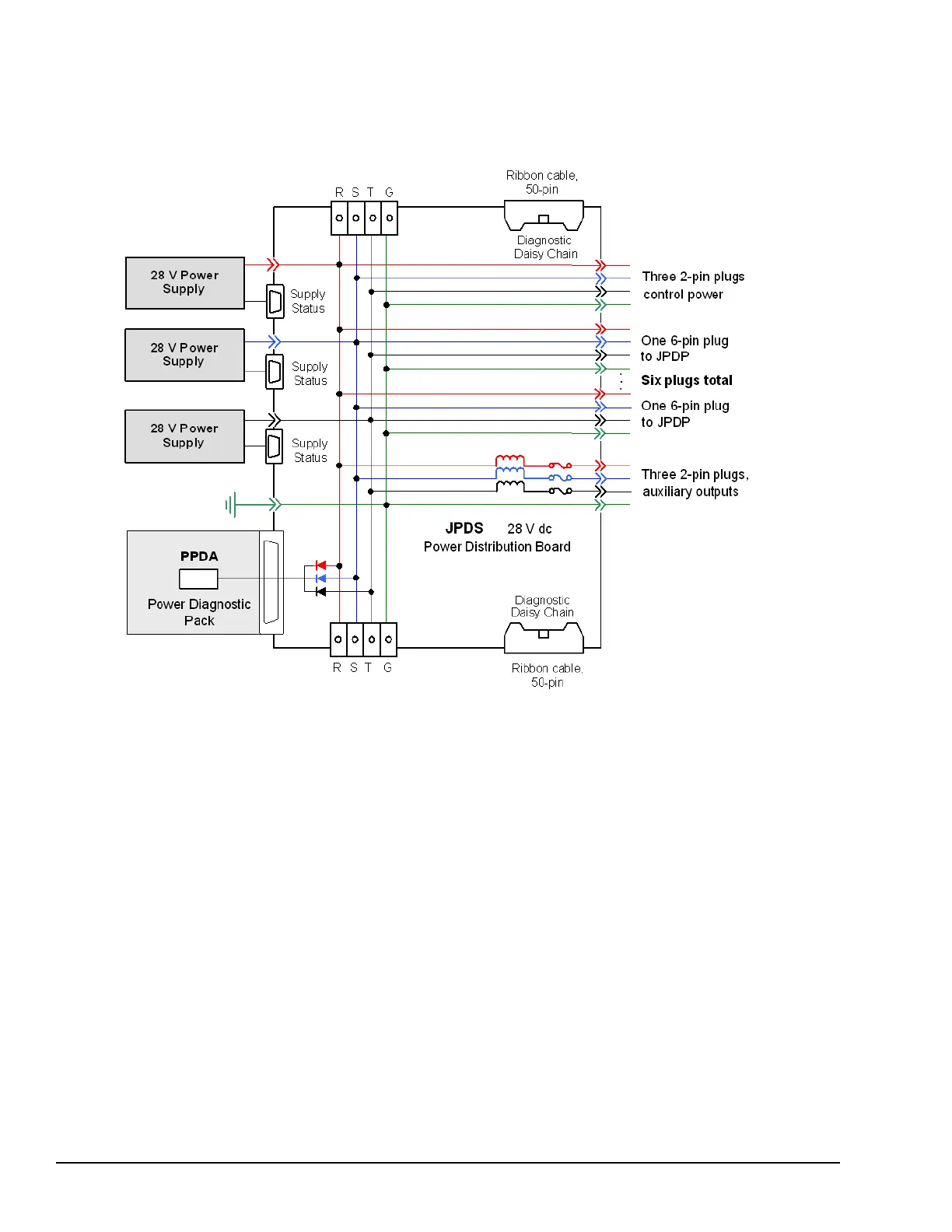 boards (for power to the I/O packs) and to the control racks. The normal 28 V power input to JPDS is through JR, JS, JT