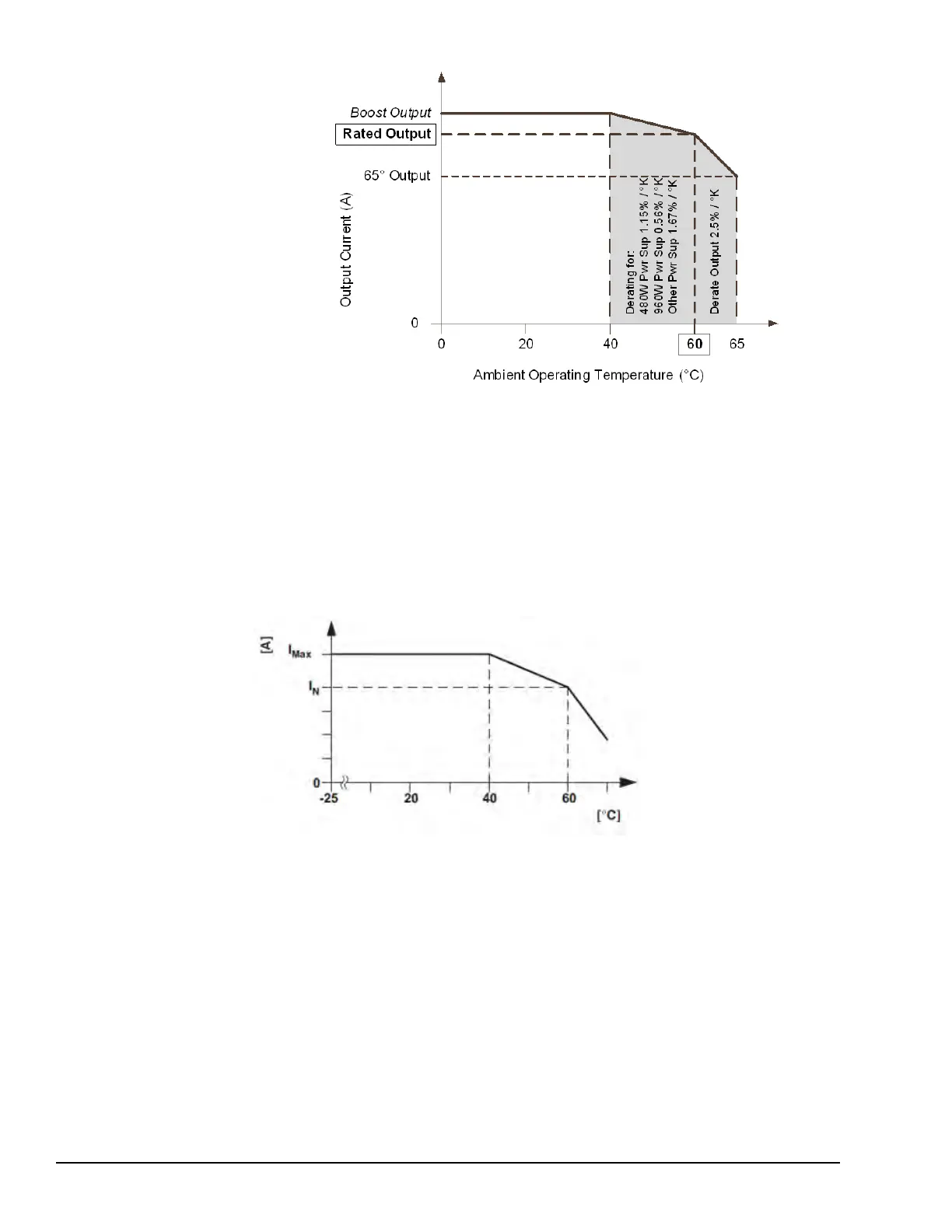 When using the 10 A power supply unit, the derating curve is automatically maintained.