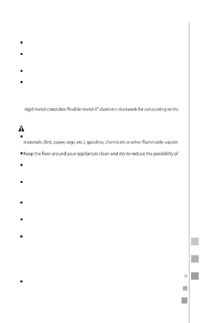 outdoors. Never use plastic or other combustible, easy-to-puncture ductwork.