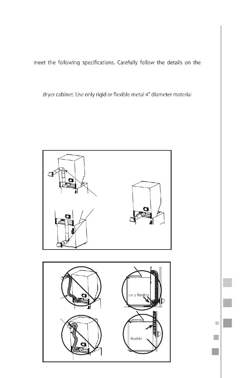Use only rigid metal 4" diameter material for the duct inside the