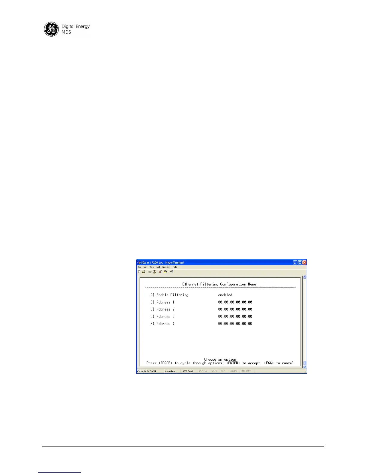 • Ethernet Filtering Configuration Menu (Figure 2-21)—This selec-