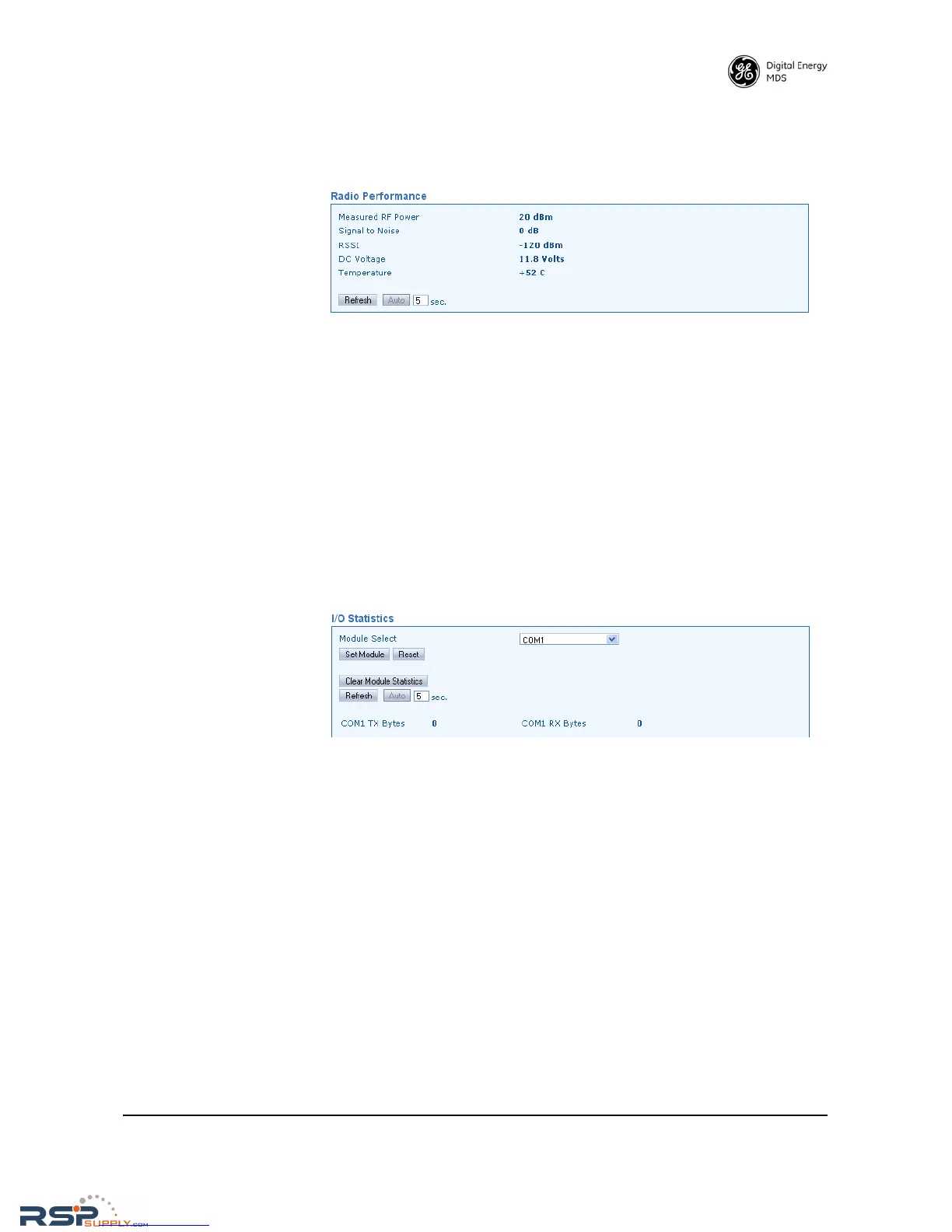 I/O Statistics This screen allows viewing transmitted and received bytes on any of the