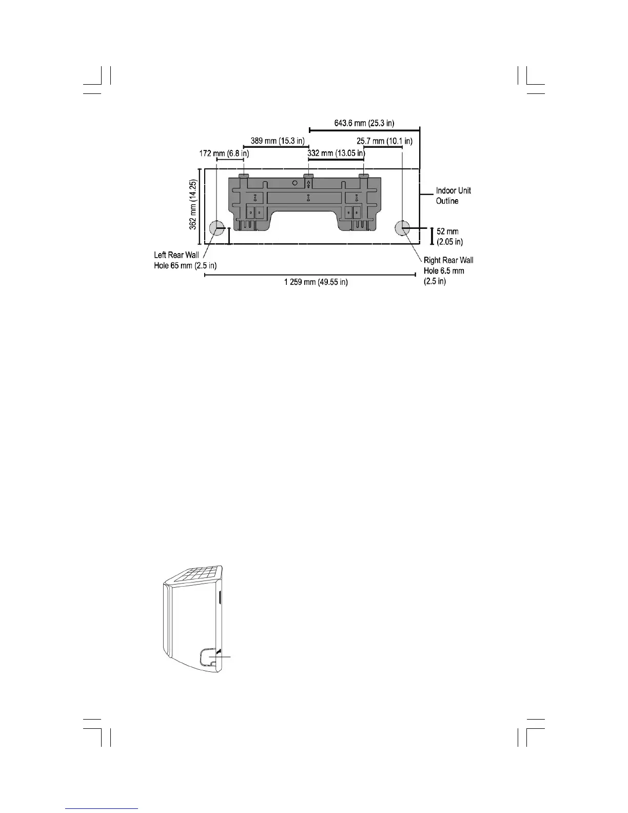 2. If the wall hole is behind the unit, keep the