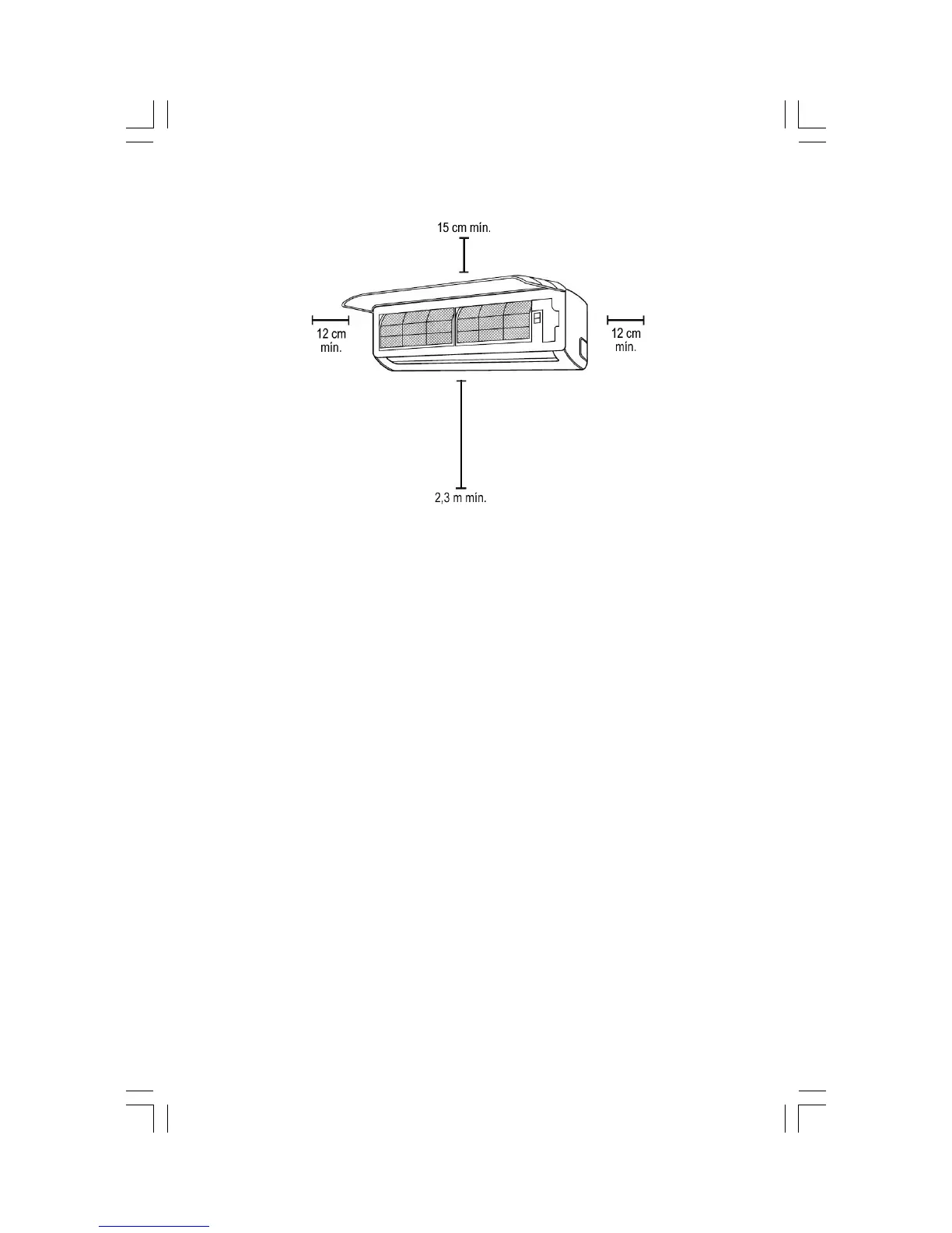 Refiérase al siguiente diagrama para asegurar las distancias apropiadas hacia los muros y